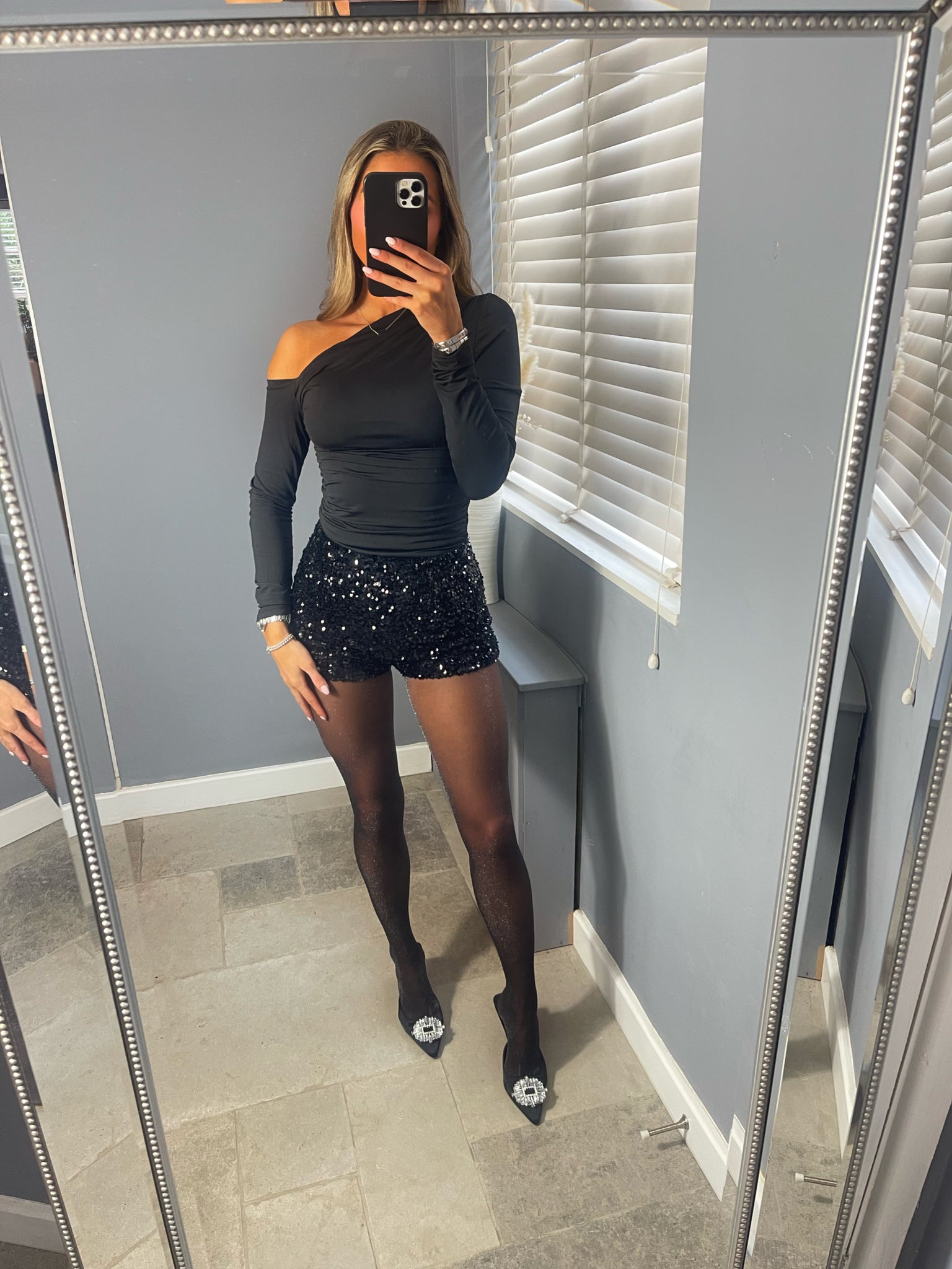 'π΅ππππΎπ' Black Sequin Shorts