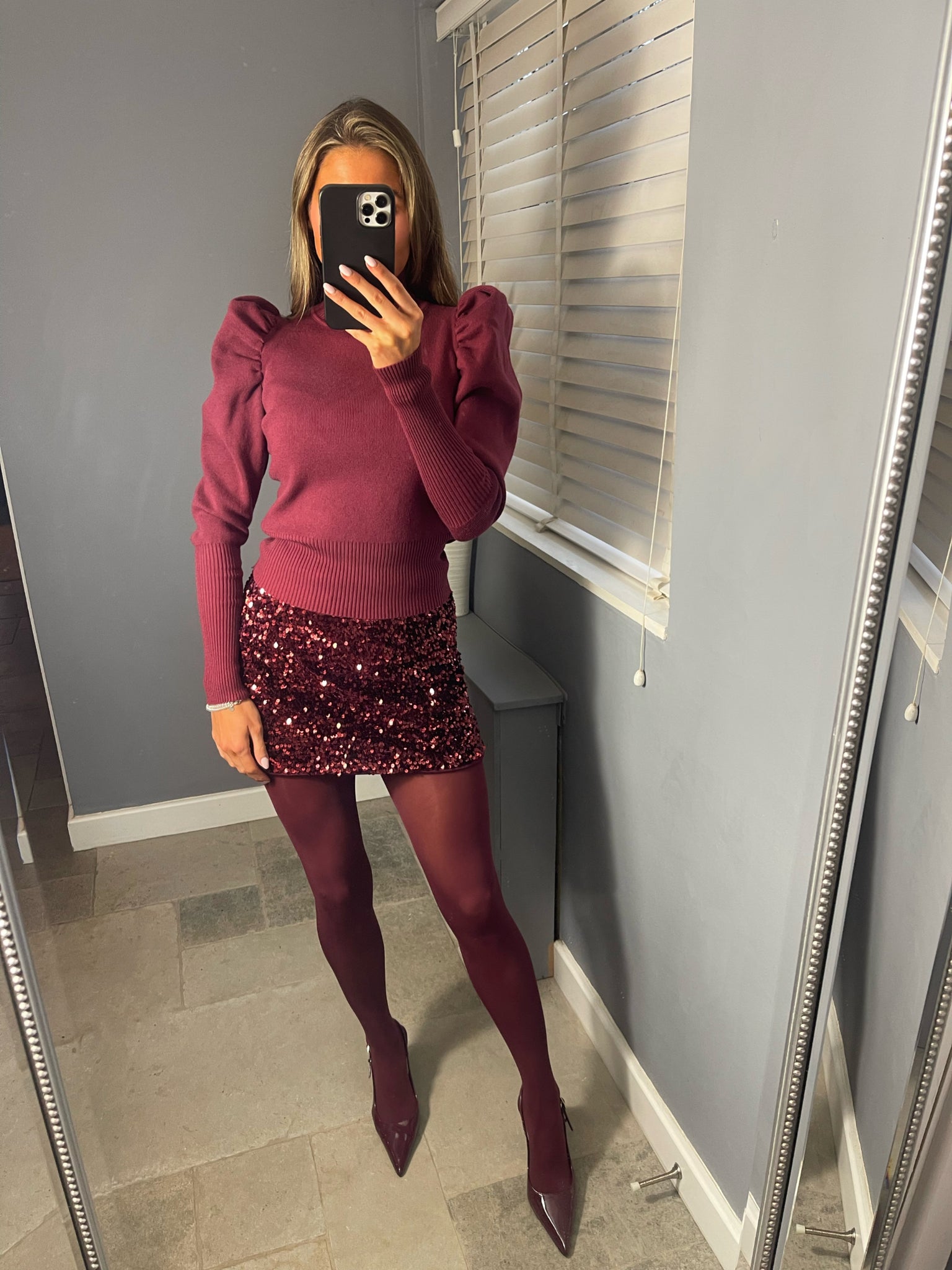 'π₯πΆπππΎπ' High neck puff sleeve jumper (Burgundy)
