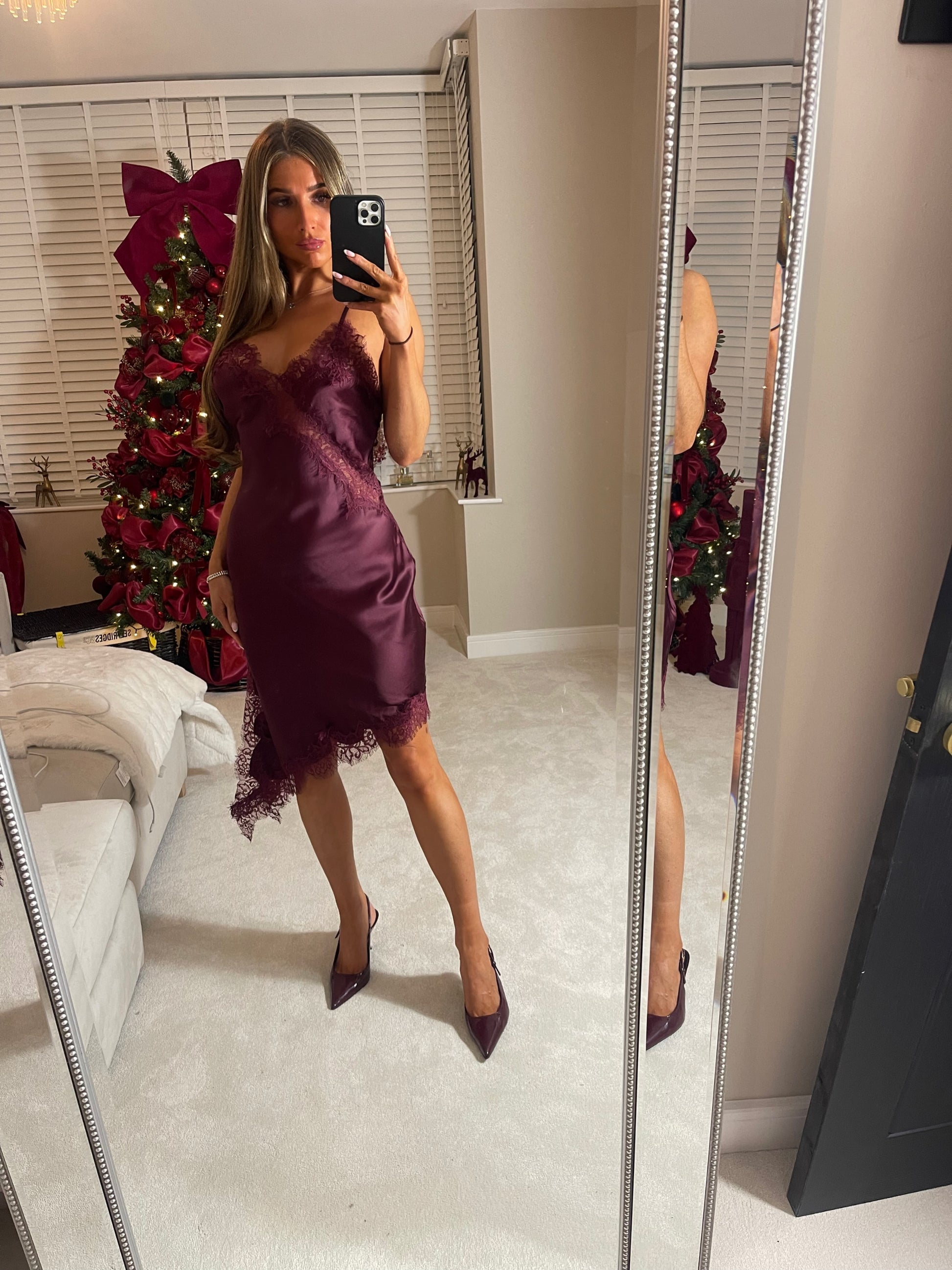 Satin Lace Burgundy Dress